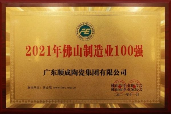 顺辉瓷砖·岩板获“2021年佛山制造业100强”“佛山市放心消费示范点”