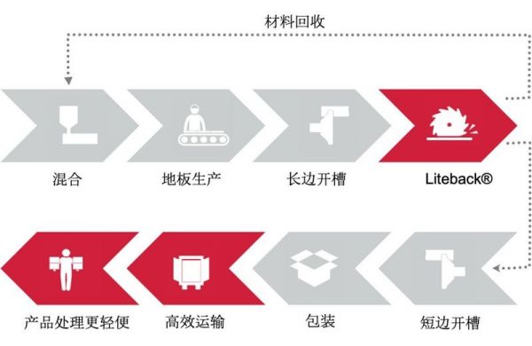 Välinge 威林格主要针对 SPC 地板推出了 Liteback®️ 地板芯材减重技术,使用设备从地板背部芯材中移除部分材料,使得地板产品重量变轻,运输成本随之减少,同时还能回收使用移除下来的原材料,提升原材料使用率,降低原材料成本。