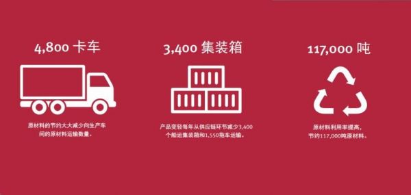·每年供应链环节可减少3,400个船运集装箱和1,550辆拖车运输;