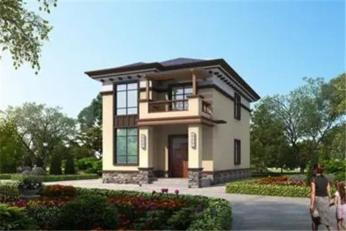 图片描述:这款新中式的二层自建房,完美的结合了现代和中式的设计,土黄色的外墙+深褐色的窗框、屋檐,让房屋呈现出了浓厚的艺术气息。而玻璃窗和阳台的设计,既可以增加室内的采光和通风,又可以让业主欣赏室外的美景。此外,内部布局紧凑合理,功能分区明确,既方便业主活动,又能满足业主的居住和休闲需求。