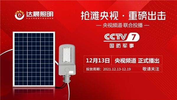 达晨照明太阳能路灯将荣登CCTV展播,展现非凡魅力