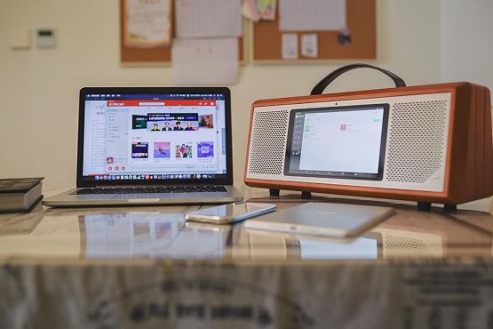 首先要给大家推荐的MC-200是集美貌与便携于一身的智能媒体中心,它拥有复古时尚、极具艺术气息的外观设计,收藏级的古韵箱体、前方的金属面网以及顶部的真皮提手,尽显别致典雅。在方便携带或移动的同时,MC-200的性能配置也可圈可点,音箱中间镶嵌了一个8英寸的高清显示器,与Android操作系统精密组合在一起,界面简洁清晰。在扬声器单元部分,MC-200左右各采用了一组20mm金属球顶高音和3英寸中低音单元,组合成立体声结构,出门在外也能给你带来非凡高质的听音体验!此外,MC-200的续航能力也是极佳,它内置10000mAh大容量锂电池,箱体后方还提供快充输出插座,可以为智能手机快速充电,帮你彻底摆脱出门时的电量焦虑,给足满分安全感!非常适合外出野餐露营的小伙伴。
