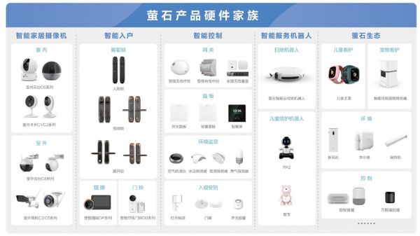 另外,基于在云平台服务方面的技术优势,萤石采用了开放生态的模式丰富旗下产品矩阵。通过与合作伙伴联合研发或输出WiFi模组、蓝牙模组、视频模组等,从而将设备纳入萤石的物联网生态体系,为广大用户提供更为完整的智能家居解决方案。