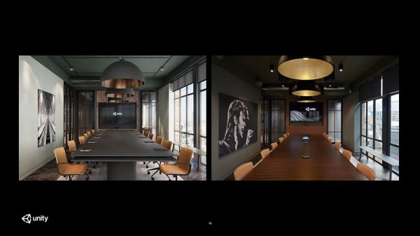 ▲Unity伦敦办公室的真实照片对比由Unity渲染的图片
