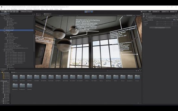 在Unity伦敦办公室演示项目中,可以在许多对象上看到BIM数据,这些都是设计和构建该空间时使用的真实数据。由于BIM数据经常嵌在Revit等BIM软件的模型中,Unity可以无损导入BIM图元数据,并在内容开发的时候,实现整合与实时交互,让任何人都可以了解供应商、材料、流程等信息,以便快速进行合作。