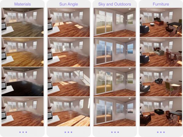 在实际应用中,Unity家居设计借助程序化方法在数据集中摆放家具,在诸如镜头位置、家具材料、光照、一天时间、天空和室外环境等组成上添加随机元素,还添加了自定义对象的支持。