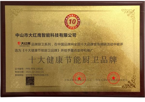 实力铸造品牌!大红鹰厨卫荣膺“十大健康节能厨卫品牌”!