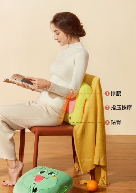 按摩枕曲面采用人体工学设计,能顺应人体曲线,做到上撑腰,下贴臀,腰背不镂空,加上记忆海绵填充,柔软不失支撑,能释放腰部压力,久坐也不容易觉得累。