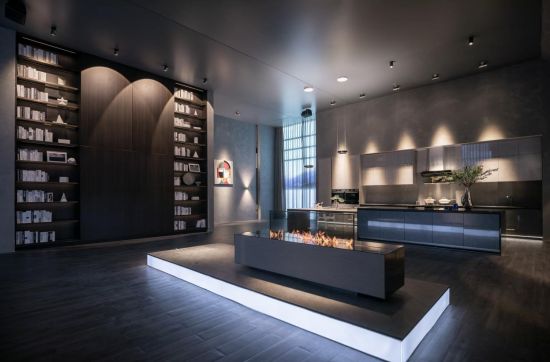 王超:总体来讲,我们是将新技术、新产品结合到了家居里面。比如,我们可以在威法展厅里看到一个非常酷的可升降透明屏,这便是我们把透明屏的技术结合到了家居定制概念,当消费者需要看电视的时候,透明屏升起来便是一个电视机,当业主不看电视的时候,透明屏降下去,不阻碍看风景,同时透明屏本身十分具有科技感,底座集成了音响、收纳等功能,体现了居者的生活品位。