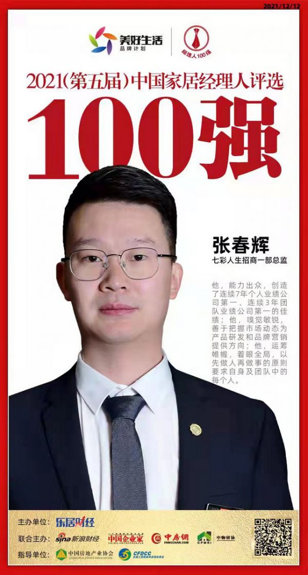 快讯:七彩人生张春辉荣获“2021中国地产经理人100强”