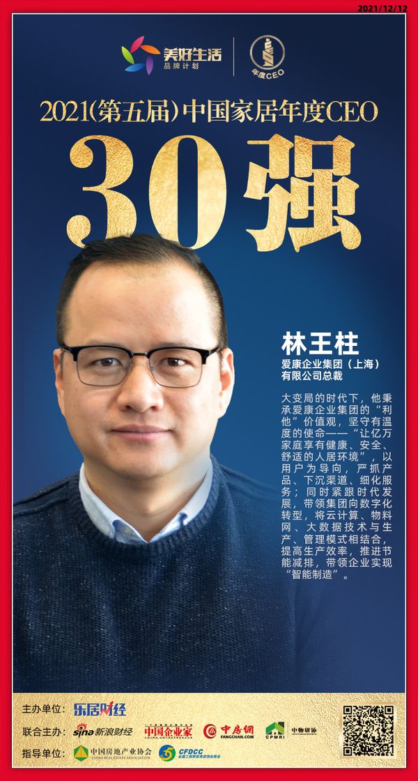 快讯:爱康集团林王柱荣获“2021中国家居年度CEO30强”