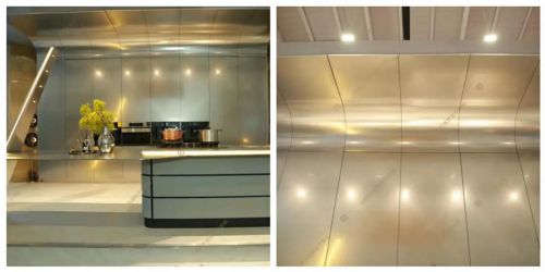 这款【星河】不锈钢橱柜正是发挥不锈钢的优越性,尝试不锈钢天花护墙在橱柜中的创新应用。
