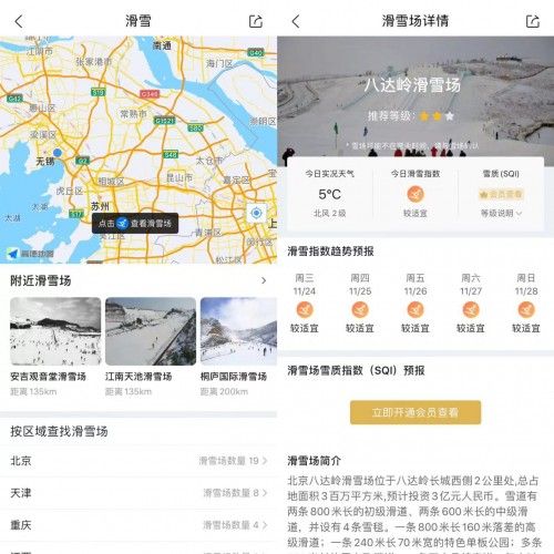 此外,若想了解更全面的滑雪指南和贴士,用户可在墨迹天气客户端的会员首页订阅“滑雪预报”服务,订阅自己偏爱的雪场后,可及时获知天气情况、滑雪指数、雪质情况等详细信息,以便更好地规划行程,充分享受难得的滑雪之旅。