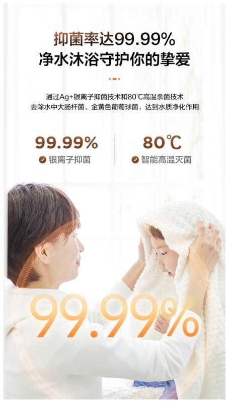 现在大家都很关注水质健康,美的动态三显电热水器JE3能够层层阻垢抑菌,不仅可以滤除泥沙、铁锈、胶体等杂质,避免“死水”产生,它还具有杀菌功能,这款热水器通过Ag+银离子抑菌技术和80℃高温杀菌技术,能有效去除水中的大肠杆菌、金黄色葡萄球菌,净化水质,敏感肌也完全可以放心洗!