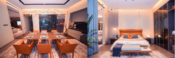门店内设有客厅场景、餐厅场景、卧室场景、阳台场景以及卫浴场景。以声音,唤起沉浸视界;让光影,营造温馨氛围;用感官,享受舒适环境。每个角落,都有家的理想模样。