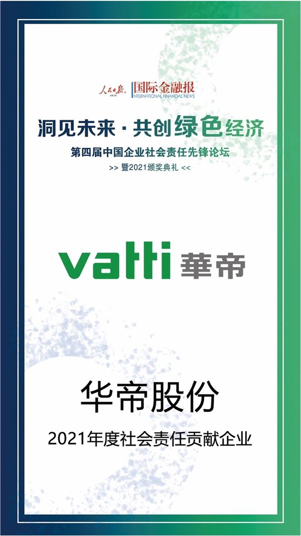 11月30日,由人民日报社《国际金融报》主办的“洞见未来,共创绿色经济”第四届中国企业责任先锋论坛暨2021颁奖典礼在上海隆重开幕。凭借在社会责任领域的持续耕耘和突出表现,华帝荣获“2021年度社会责任贡献企业”,展现出华帝全力投入社会责任事业的成果被认可。