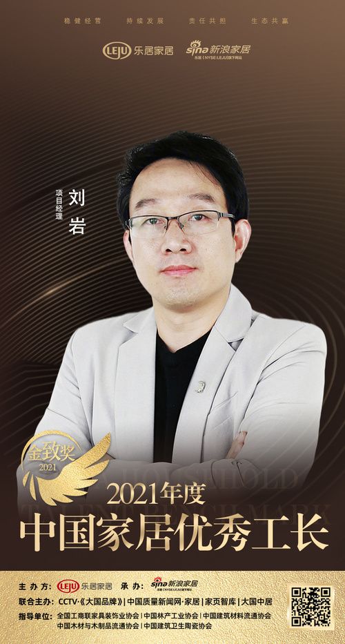 2021年12月18日,“智见·2021中国家居新时代盛典暨金致奖颁奖典礼”在广东佛山盛大举行。由乐居家居主办、新浪家居承办,CCTV•大国品牌、中国质量新闻网•家居、家页智库、大国中居联合主办的2021中国家居「金致奖」评选在盛典隆重揭晓。工长刘岩荣获「2021中国家居优秀工长」称号。