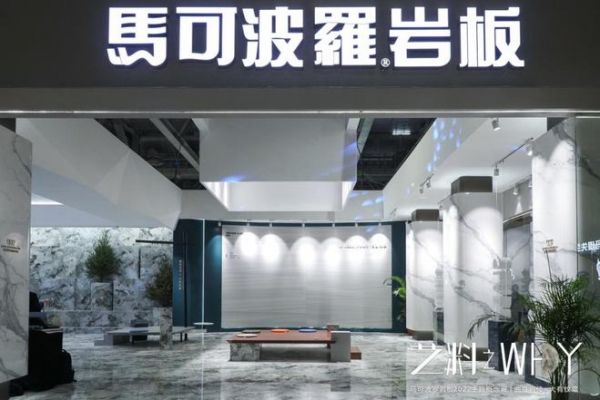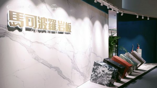 近期刚刚发布的马可波罗岩板2022新品也在展馆首次亮相,且充分融合到展馆设计当中,可谓是浑然天成。