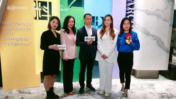 开展首日,新浪家居特别策划“潮这儿看”主编逛展,新浪家居全国主编 新浪家居商学院秘书长 王晶、新浪家居华南主编 叶玲菊、新浪家居华南设计主编 吴焰超主编,以及特邀嘉宾深圳文陈设艺术设计创始人/创意总监 文雪,一同前往马可波罗展位打卡直播。在马可波罗控股营销中心副总经理黄焱斌的介绍下,逛展团纷纷表示对岩板产品和设计感到惊艳,直呼其堪称岩板界的天花板。