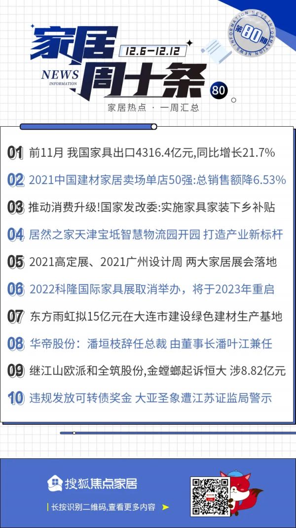家居周十条丨前11月家具出口增长21.7%、金螳螂起诉恒大…