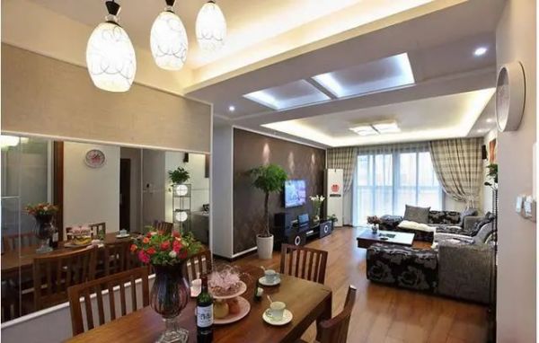 餐厅看客厅,餐厅这边感觉做的太复杂了。