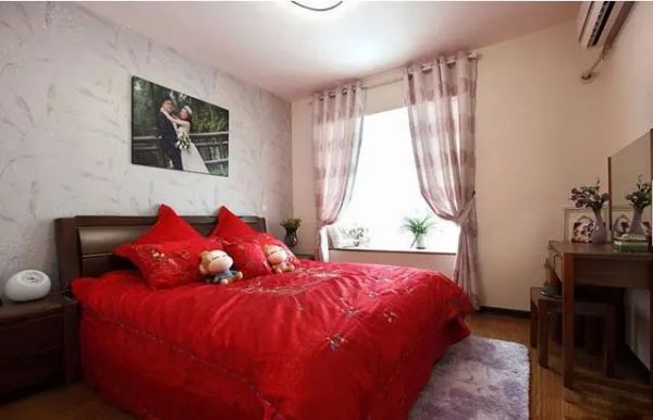 这是主卧了,家具颜色选的太深了,窗帘太简单了,吊顶也不做个造型,唉。