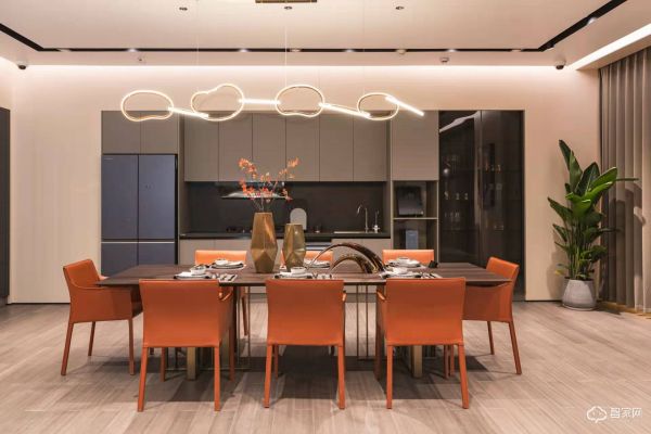 进入餐厅,用户可以通过专用控制面板、语音控制、智慧生活APP三种方式触发“就餐”场景。进入“就餐”场景后,餐厅基础照明与氛围照明会调至40% 3500K,重点照明墙面与重点照明台面调至90% 3500K,餐厅主灯调至80% 3500K,整体氛围呈明亮暖色调;与此同时,Sound X智能音箱会播放温馨舒缓的“就餐类”音乐,加上暖色调光线,促进食欲。