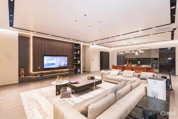而在“观影”模式被触发后,场景会自动关闭窗帘,开启智慧屏;与此同时,空间内整体照明亮度缓缓降低,营造沉浸式观影氛围。此外,重点照明台面调至20% 2700K,保障活动区域安全性,氛围照明调至15% 2700K,有助于削弱智慧屏与周围环境的明暗对比,保护视力。