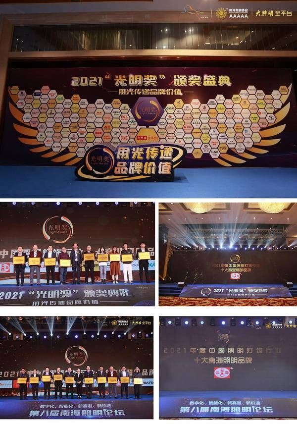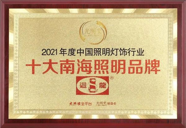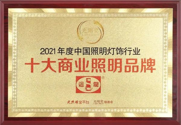 此次2021“光明奖”年度评选重磅揭晓共22个奖项。在我国照明灯饰3万余家企业当中,在数以百万照明从业者当中,10位杰出企业家、20位出色营销人、147家实力品牌荣耀上榜!迴龙灯饰凭借卓越的技术创新、强大的品牌实力与影响力,受到评委会一致认可,荣膺“光明奖”2021年度中国照明灯饰行业「十大商业照明品牌」、「十大南海照明品牌」二大奖项。同时,荣获「2021年送光明慈善企业」、「2021年十大优秀理事会成员」的荣誉称号。