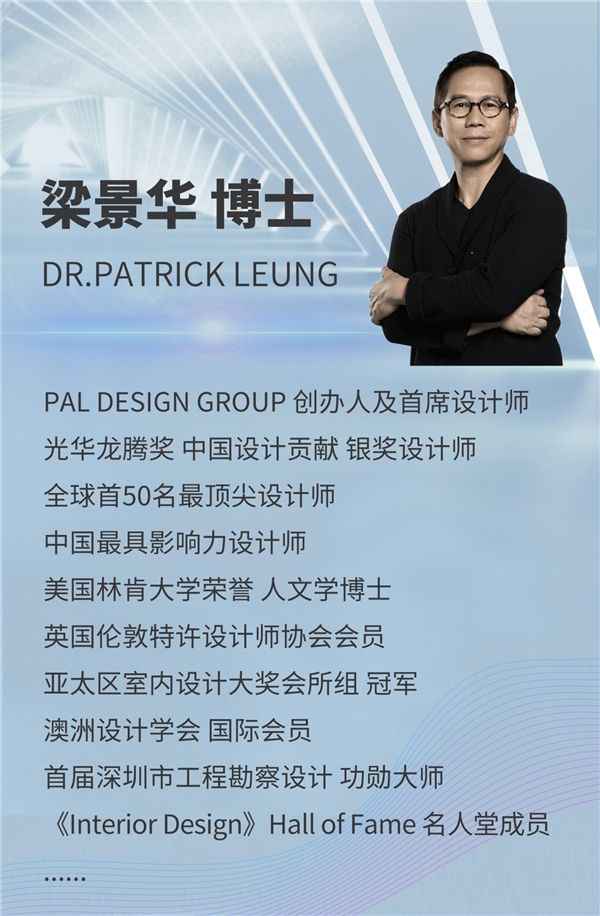 梁景华先生从事设计四十多年,一直怀着使命感地创造灵动的设计,注重空间和人性心灵的结合,让设计带动升华,让空间产生价值。配合建筑设计,追求大器、精炼且耐看的当代设计,并强调以人为本,将美学观点融入空间,赋能传统文化创新设计。