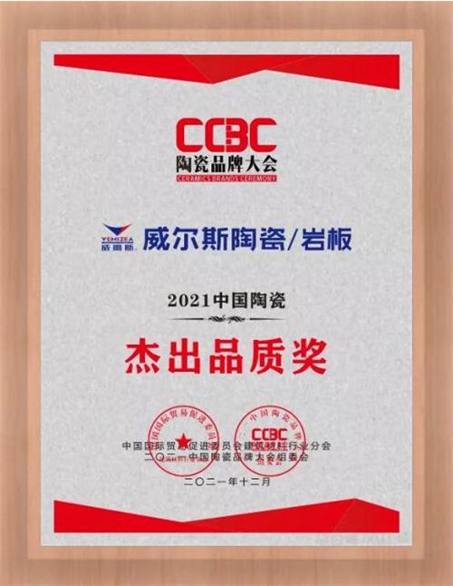 威尔斯荣获"2021中国陶瓷•杰出品质奖"开启加盟新未来
