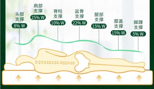 用乳胶汁做成的床垫拥有了十足的回弹性,可以顺应身体的轮廓给予支撑,柔软的乳胶床垫可以大大缓解人体压力,在保证舒适柔软的情况下还能给予支撑。帕迪亚天然乳胶床垫根据人体工学原理,采用科学的分区设计,更具整体性也更富弹性,可有效承托头颈、肩背、腰椎、盆骨、膝盖、小腿、足踝七大区域,高度贴合身体的凹凸曲线,减少脊椎附近肌肉及韧带的张力,使脊椎在睡眠状态下得到休息和恢复,让疲惫的身心得到放松,保护脊椎健康,促进深度睡眠。
