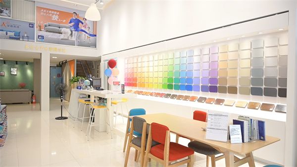 |珠海多乐士店的选色样板墙色彩斑斓。