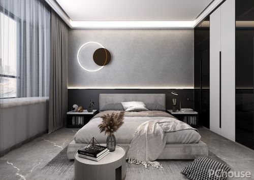 将简约风格糅杂入轻奢风格设计,突出了现代设计的轻装修、重装饰,黑色的线条强调了空间的边界,与暖色的线性灯光形成强烈反差,柔软的床采用弧线的造型,更强调了慵懒的舒适的家装效果。