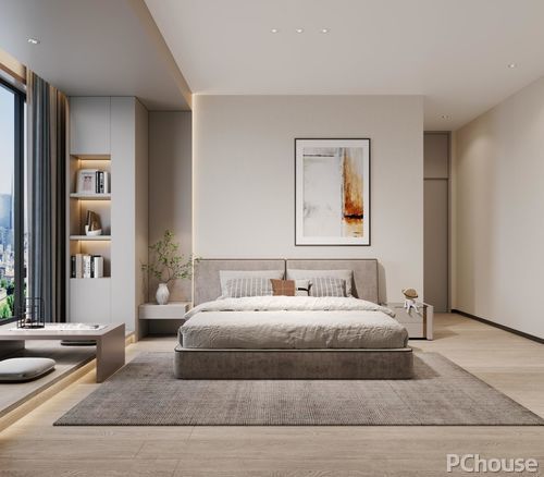 用心打造舒适休闲的观景阳台,让风景融入生活,卧室浅浅的白色墙面、简约装饰挂画、原木色家具,配上一缕暖阳,打造休闲惬意的生活。