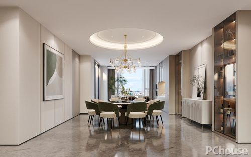餐厅一隅,聆听灯的故事,正视客厅的精致餐厅,颜色和材质保持轻盈清爽,摒弃多余的装饰,柔和的色调,令空间中散发着平静的气氛,营造令人放松的氛围。