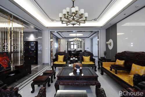 中国传统居室非常讲究空间的层次感,这种传统的审美观念在“新中式”装饰风格中,又得到了全新的阐释。依据住宅使用人数和私密程度的不同,需要做出分隔的功能性空间,则采用“垭口”或简约化的“博古架” 来区分;在需要隔绝视线的地方,则使用中式的屏风或窗棂,通过这种新的分隔方式,单元式住宅就展现出中式家居的层次之美。