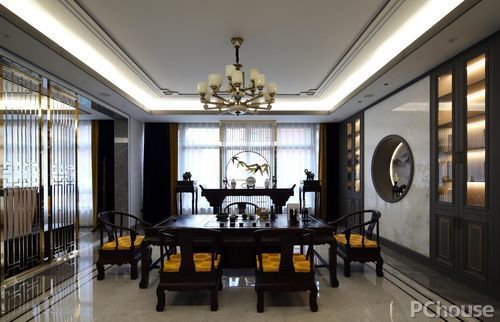 茶室、条案、玄关结合更能符合本空间的气场,在灯光氛围的衬托下,约三五好友一起品茶聊天,何不是一种享受。