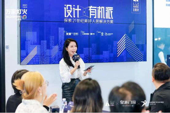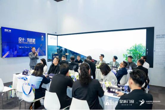 展会开幕当天,皇派在门窗在展馆内举行了金腾奖设计师长桌派分享会,金腾奖金奖设计师邓丽司、郑小馆,与行业内20位知名设计师齐聚一堂,围绕“设计 · 有机派”为主题展开交流分享,以设计之名,探讨如何为亿万消费者提供美好人居解决方案。