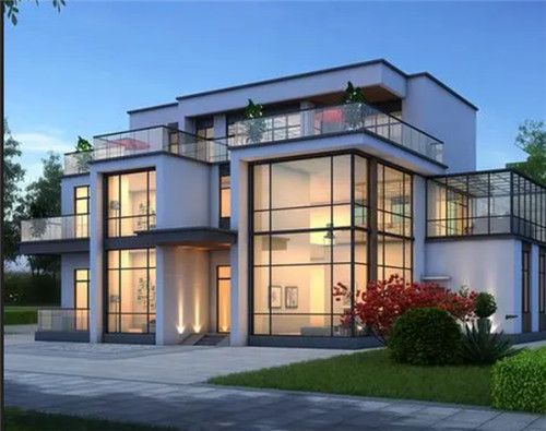这款现代别墅非常符合年轻人的审美,白色的墙面+大面积的落地窗户,则可以将现代气息展现到极致。而阳台和露台的设计,既可以增加室内的采光,又可以供业主观景乘凉。