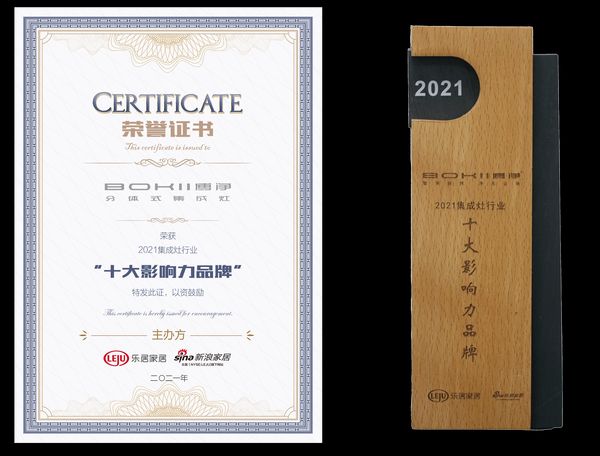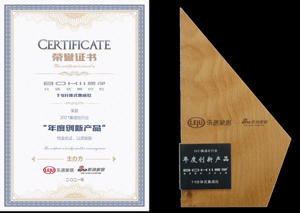 浙江博净电器有限公司(以下简称“博净”)在会议年度荣誉榜单揭晓环节中,荣膺“2021集成灶行业十大影响力品牌”,并率其产品博净T-9分体式集成灶喜获“2021年度创新产品”。
