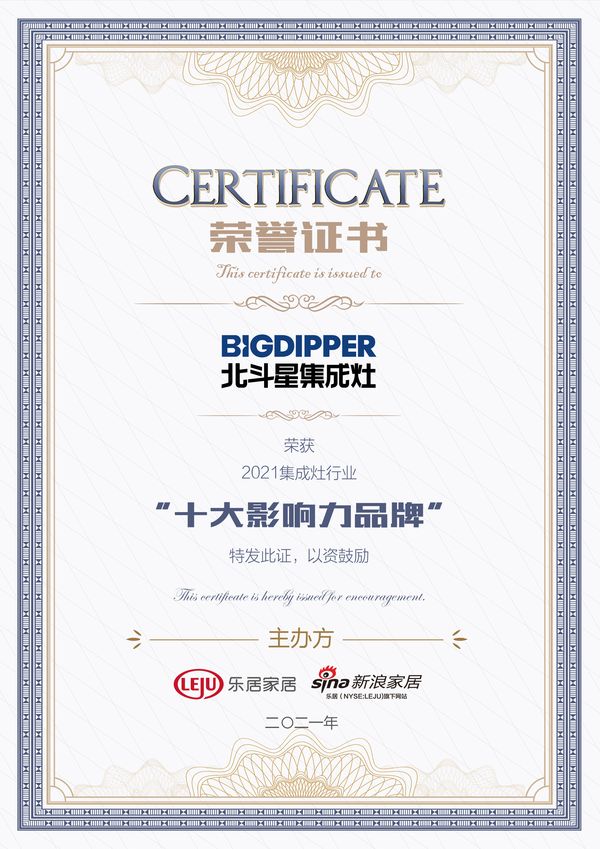 荣誉见证!北斗星集成灶荣获新浪家居2021集成灶“十大影响力品牌”