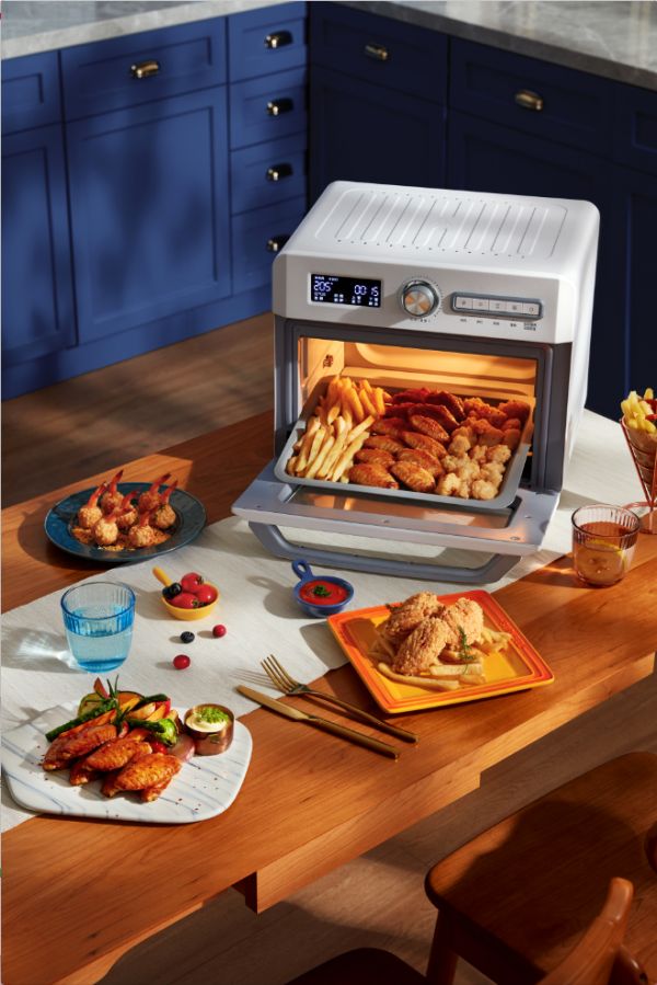 东菱电器敏锐捕捉到这一市场变化,于近日创新推出东菱空气炸烤箱,它既能做出专业水准的烘焙美食,又能轻松胜任空气炸功能,而且拥有烘焙、空气炸、果干、披萨、发酵、解冻等六大模式,一机多用,实现全能料理。多重技术造就的出色产品力,给用户带来更丰富、惊喜的料理体验。