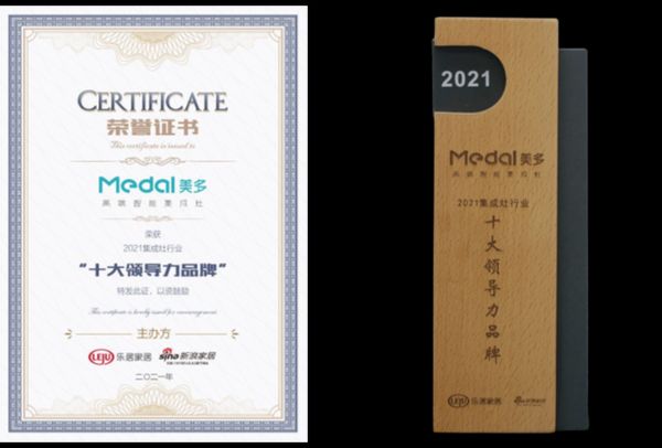 创新引领,荣誉见证!美多荣膺新浪家居“2021集成灶行业十大领导力品牌+年度匠心产品”