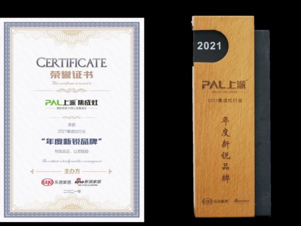 实至名归,上派集成灶荣获新浪家居“2021年集成灶行业年度新锐品牌”殊荣