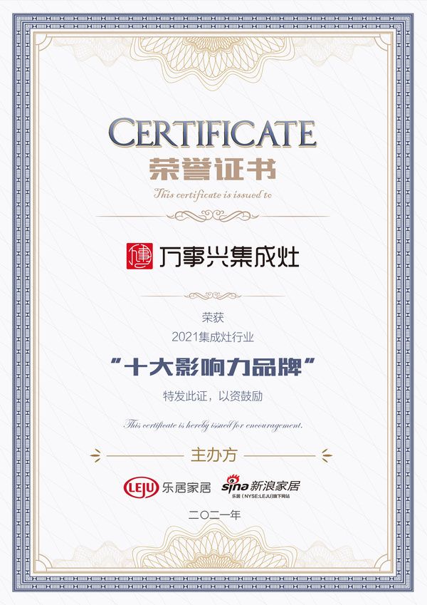 崇高的荣誉是行业专家和广大消费者给予万事兴集成灶品牌和产品的双重肯定;万事兴将引领整个集成灶行业进一步的提升和发展。在产品同质化,创新空间有限的今天,万事兴集成灶凭借强大的制造实力、先进的技术创新,将会在竞争激烈的集成厨电品类中脱颖而出!
