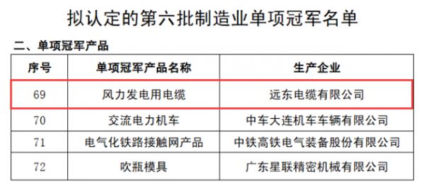 开发单项冠军产品,远东电缆助力制造业高质量发展