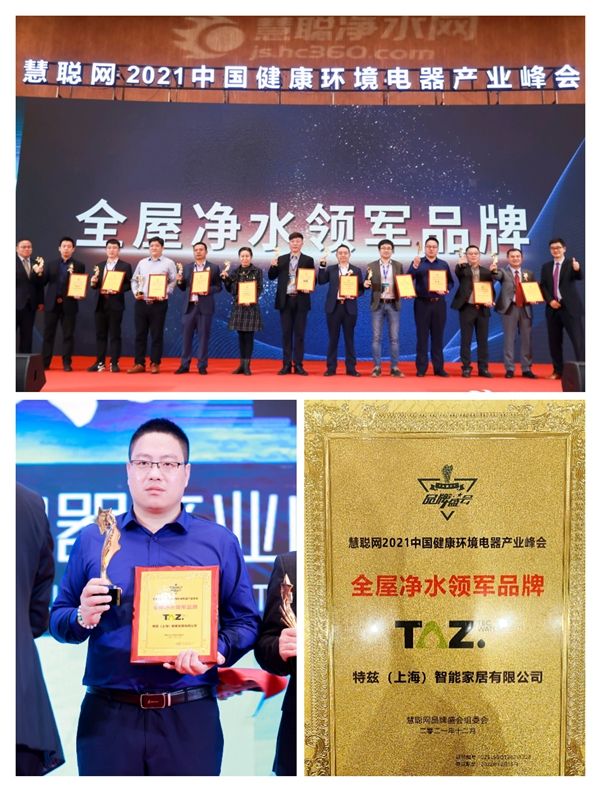 “特兹”荣获2021中国健康环境电器产业峰会全屋净水领军品牌
