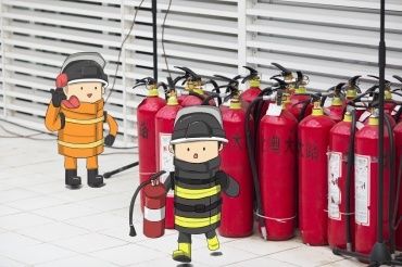 2、在距离起火点5米左右处,放下灭火器。在室外使用时,应占据上风方向。