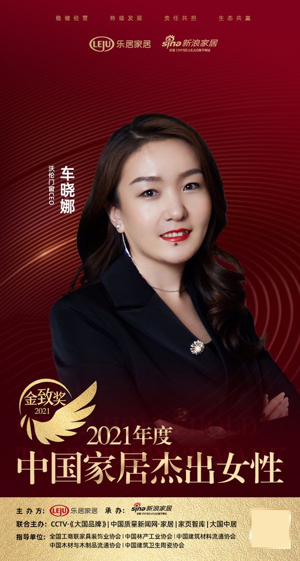 金致奖|沃伦门窗CEO车晓娜荣获「2021中国家居杰出女性」称号